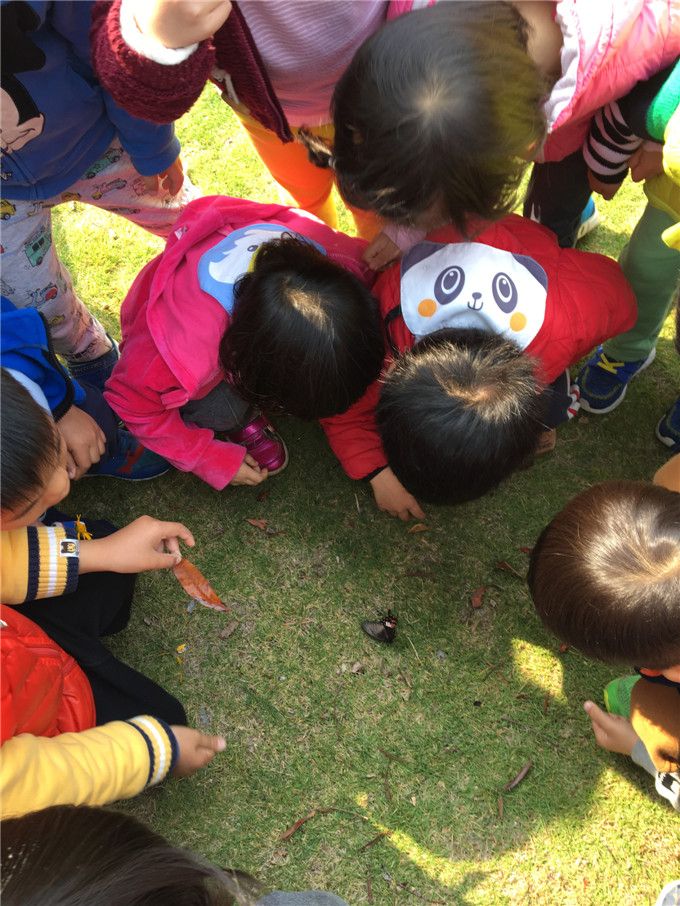 柠檬花边上的一只死掉的黑色蝴蝶把几个爱发现的孩子们深深吸引了。大家围着它讨论观察,当当突然说道:“我知道了,春天是漂亮的黑色!”