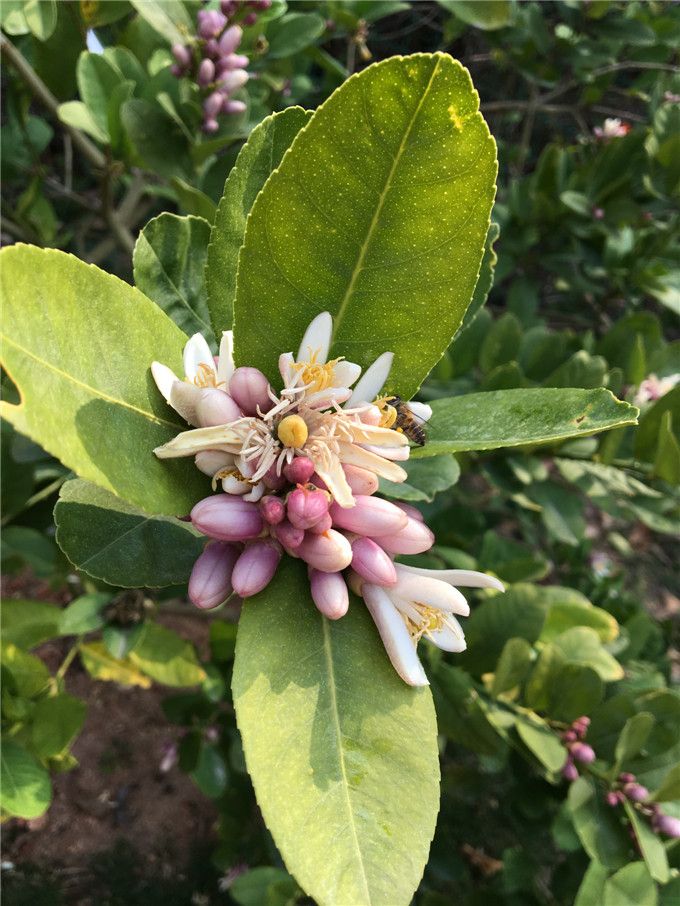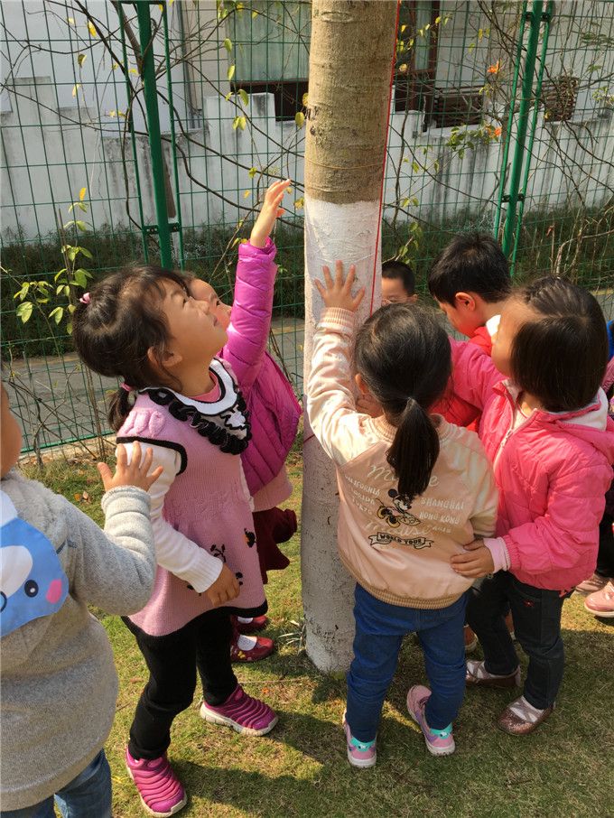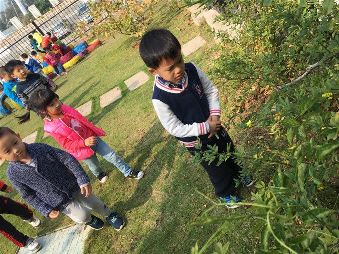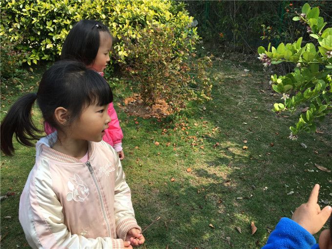 “春天是亮晶晶的橙色!”当大多数孩子们还沉醉于炮仗花的美丽时,倩倩指着柠檬花说:“我发现春天是点点的紫色”。这时一只蜜蜂正在柠檬花上辛勤耕耘,小语说:“春天是甜甜的白色,才对!”