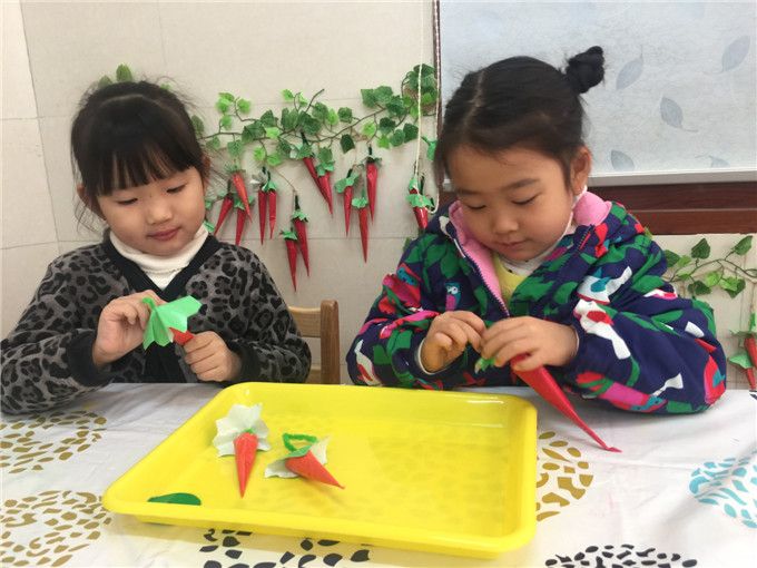 趣味手工-瞧,我们不仅会画画,还会使用简单,双面胶,运用折,剪,粘等技能制作各种各样的手工呢!可爱的漫画灯,火红火红的辣椒,香喷喷的茄子,还有我们“菜地上”播种的“蔬菜”,是不是顷刻调动了你的味蕾呢?