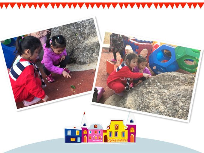“我给蜗牛做了一件被子,有点好看,它会喜欢吗?”、“这么多干枯的树叶堆成一堆,天冷的时候蜗牛就可以躲进去,应该会暖和一些”,气氛又和缓起来了,灿烂的笑容又重新回到孩子们的小脸上……