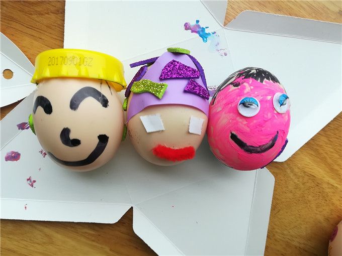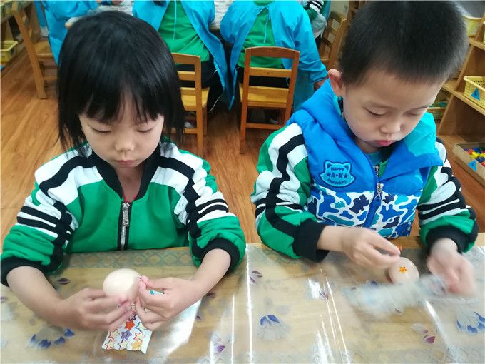 小艺术家们充分发挥自己的想象,有的画出了夸张的表情,有的构思出各种有趣的小动物,有的插上了富有灵气的天使翅膀,孩子们认真地创造出一个个童真稚趣的“圆蛋”作品,完美地完成了蛋宝宝的大变身。