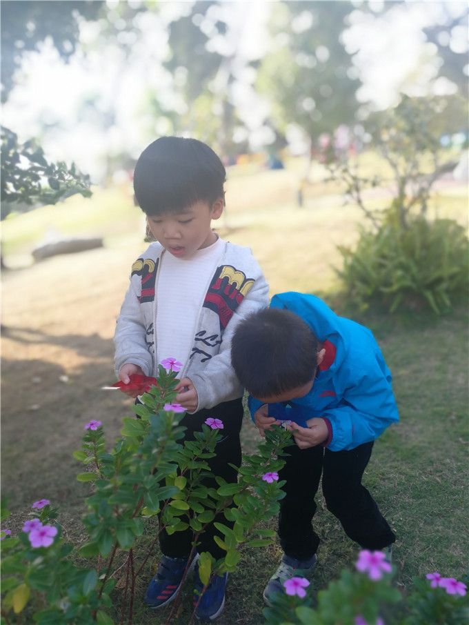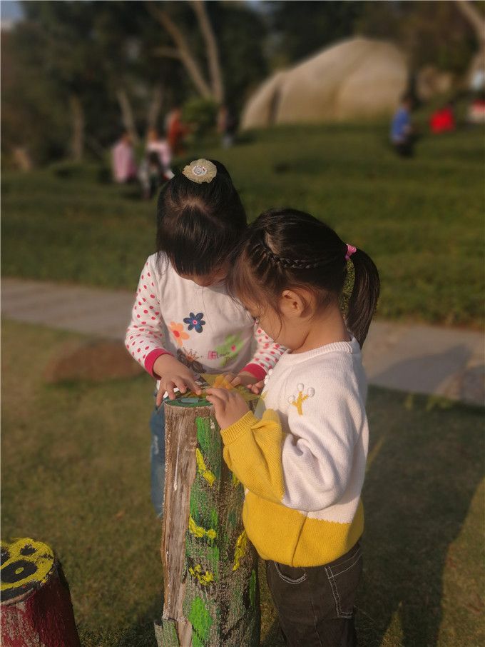 “老师老师,我看到的树是红色的......你看你看,我看到的天空是黄色的......。”快瞧啊,这群充满好奇、探索精神的小精灵们,手里拿着不同颜色的色片在寻找大自然中不一样的颜色呢。“老师,你都变成红色的了,哈哈哈......”允乐说完自己就哈哈大笑起来;“彤彤快看,我的衣服变成红色的了”。“我的衣服变成黄色了耶,太有意思了吧!”天天和彤彤在互相分享着自己发现的小惊喜,他们的样子看起来开心啊!