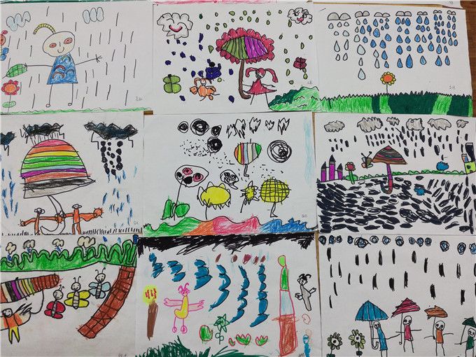 下雨天贴近萌娃的生活,把自己亲身经历的雨天活动,用绘画的方式用自己语言清楚描述出来。在绘画中萌娃大胆的表达自己的想法,最后看到的是孩子们眼中美丽的,独一无二的雨天。
