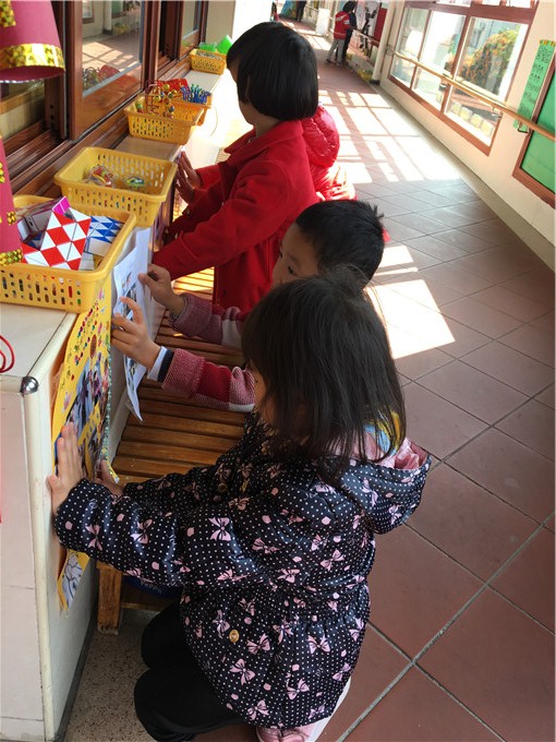 欢乐的时光总是很短暂,还想听更多的假期趣事怎么办。聪明的当当提出来了:“可以把海报,照片都贴在墙上呀,那样有空就可以看了!”说干就干,孩子们开始忙碌开来了——张贴海报,照片,忙得不亦说乎!