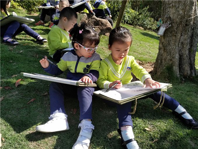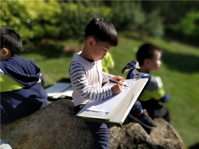 在这个充满诗意的季节,中二班的娃儿们兴冲冲地背起画夹,来到风景秀丽的小山坡,写生去啦!
