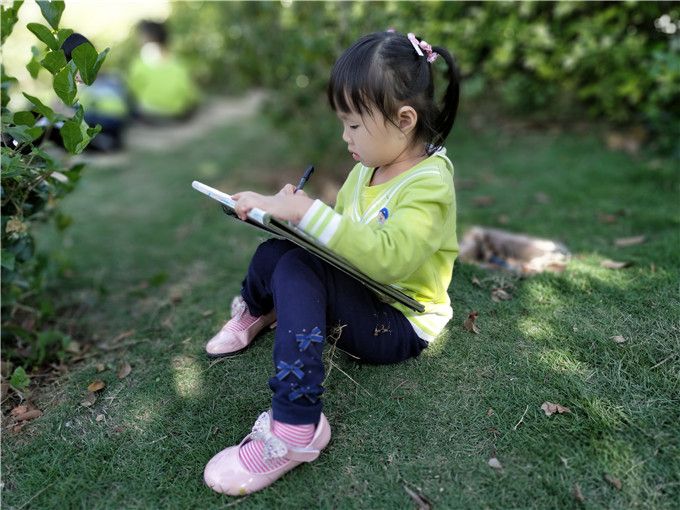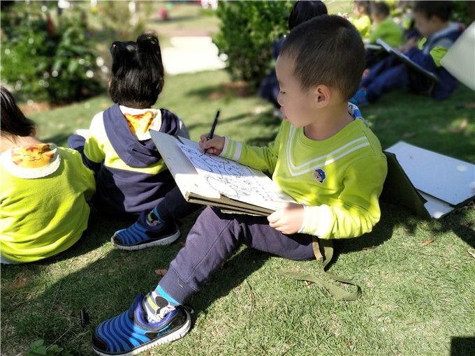 孩子们找到自己喜欢的位置,舒服的坐下。在阳光下,一张张稚嫩的小脸,一双稚嫩的小手描绘着初冬的美好。