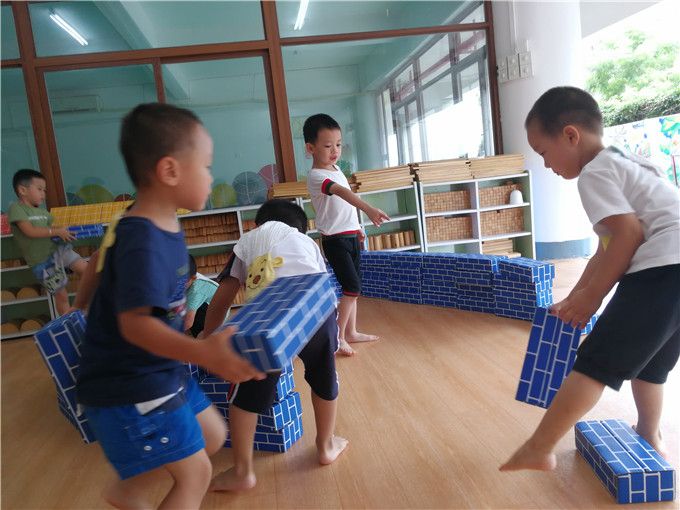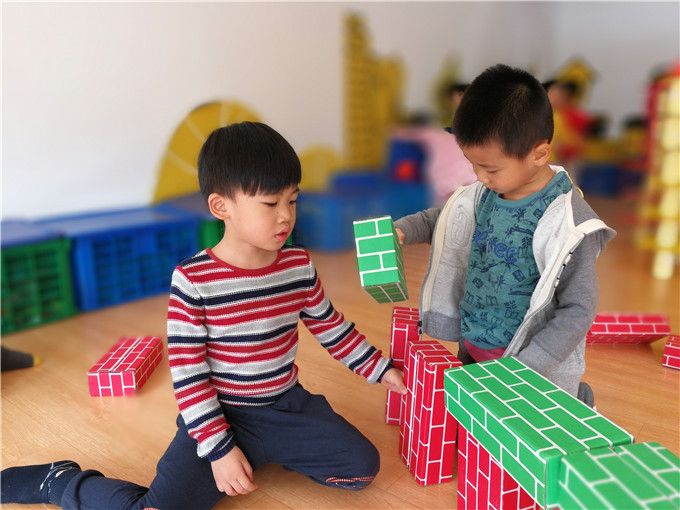 在之前的活动中孩子们对“土楼”以及“土楼文化”的了解之后,今天在他们的建构游戏中,他们要亲自用小手来搭建出他们自己眼中的土楼了,是不是很棒呢!瞧,他们有的搬积木,有的在规划场地,有的商量讨论着怎么搭建他们的土楼,现场的气氛可以说是火热啊!