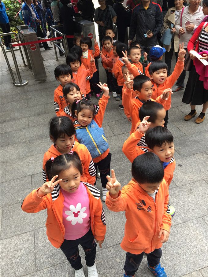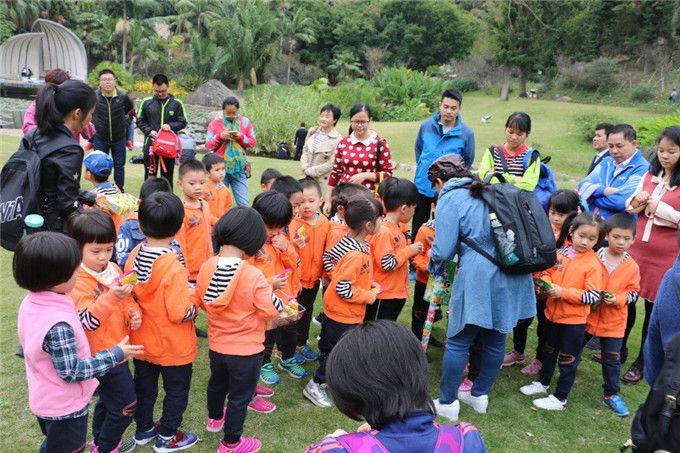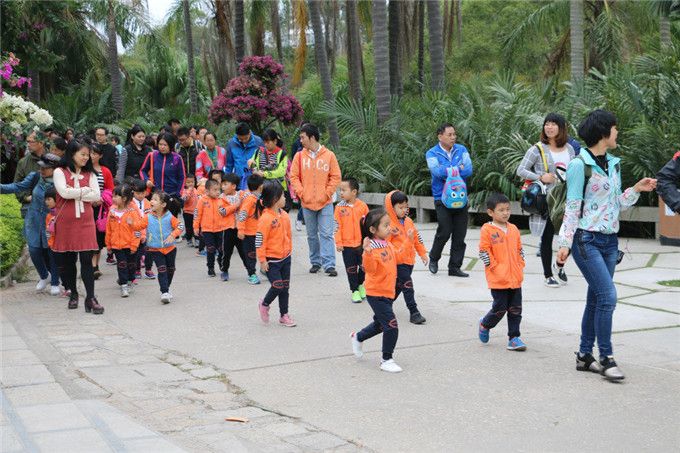 上午9:20,中四班的家长和小朋友们陆续到达植物园正大门口。小朋友们有序自觉地排成整齐的两列,家长则紧随其后,9:40准时进入植物园。