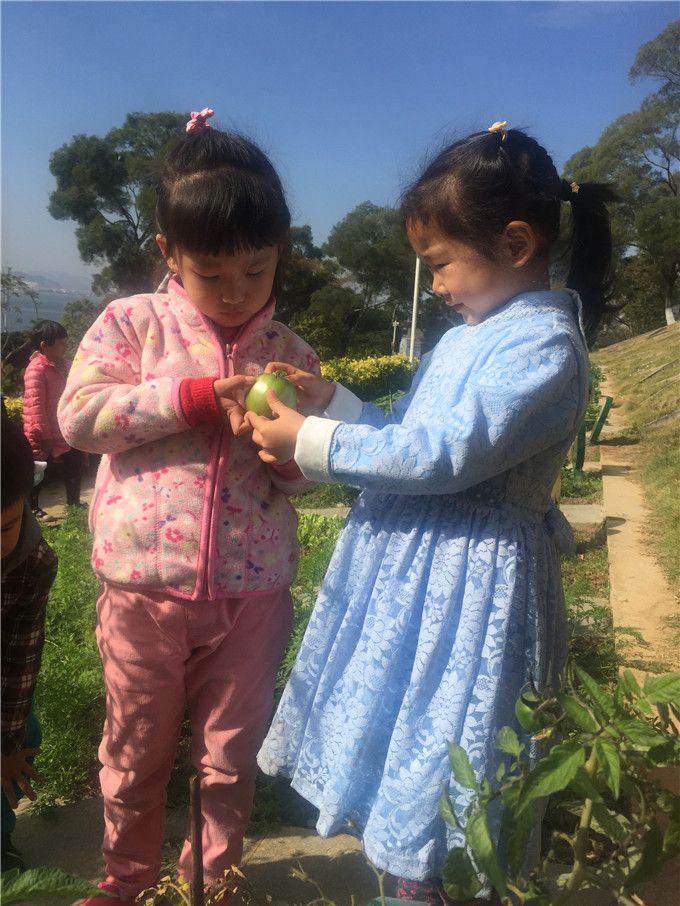 终于等到果实长大成熟啦!小小农夫们早已按耐不住丰收的喜悦,一起动手,欢呼雀跃地忙于田间,享受收获的幸福!嘿嘿,老师教我们的《摘果子》可以派上用场咯!果然,小手要轻轻一转,果子才容易摘下来。这是我们摘下来的西红柿,厉害吧!看起来有没有垂涎欲滴呢?