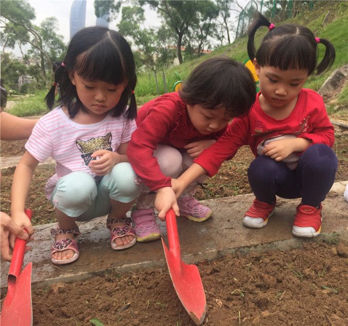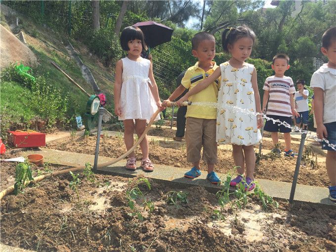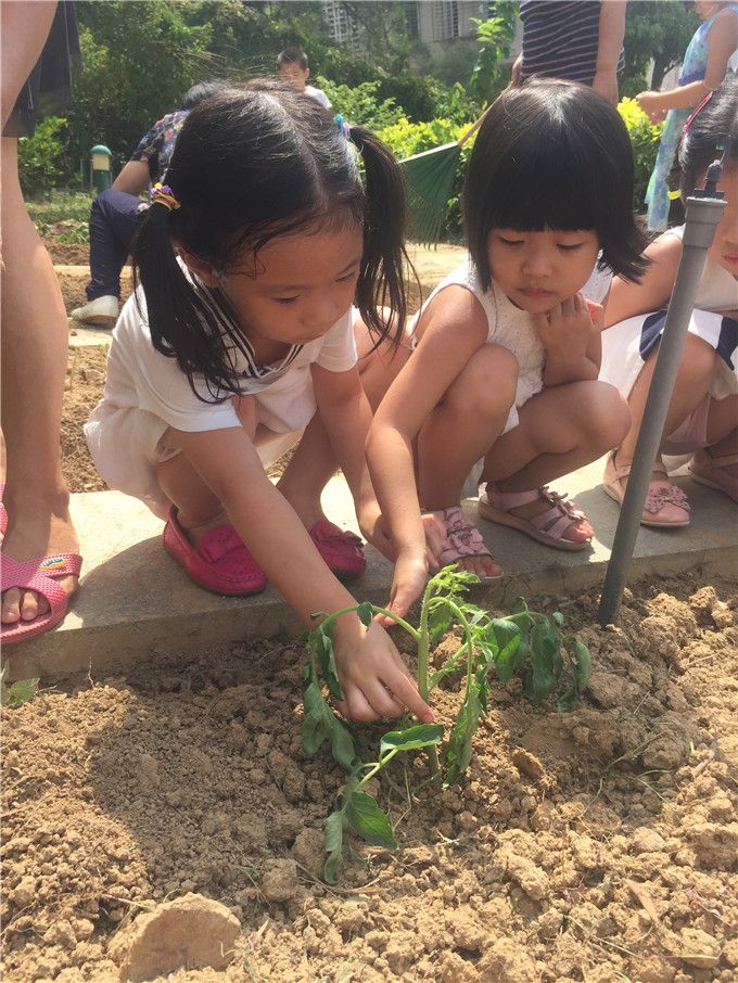 瞧,中六班的小农夫们在本班的“责任田”里种下了好吃又有营养的西红柿,自己动手松土、播种、浇水、施肥。别看我们年纪小,播种采摘我们样样行哦!