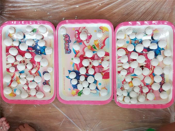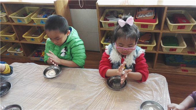 你看!孩子们做的可认真呢。有的孩子小心翼翼地将小面团压成米饼;有的孩子把面团搓成了大大的丸状,有模有样地团起了丸子;有的孩子学着老师的样子把汤圆搓得又大又圆;有的孩子负责把搓好的汤圆挨个摆在盘子里……在孩子们的分工合作下,一个个圆溜溜的汤圆就制作完成了。盘子里装满了汤圆。看着自己的“劳动成果”,孩子们兴奋不已。