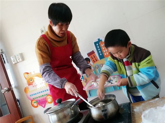 几个孩子端着盘子,准备把搓好的汤圆下锅了。孩子的眼中充满了期待,都迫不及待地想尝一尝自己亲手做的汤圆的味道。随着“咕嘟,咕嘟”的声音,热腾腾地汤圆出锅了。
