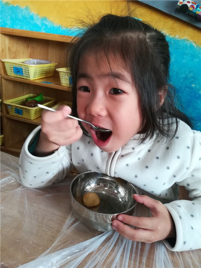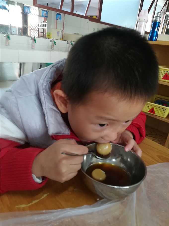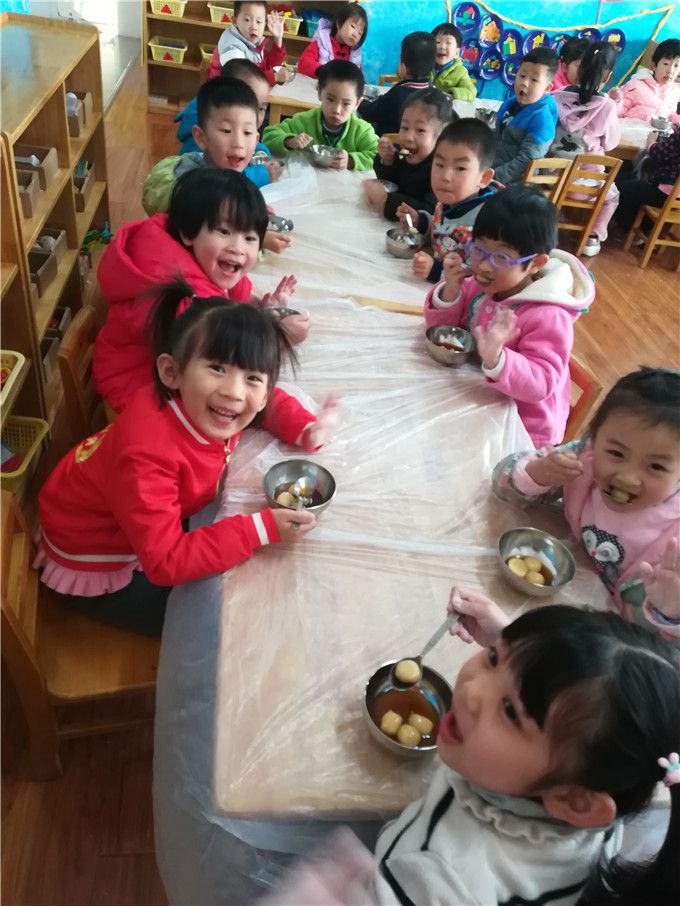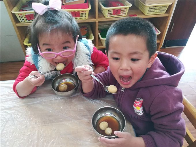 在这暖暖的冬至,孩子们用自己的小手做出了满满爱意的汤圆,圆滚滚的汤圆包裹着孩子们美好的祝愿,包裹着孩子们甜蜜的微笑,更包裹着孩子们喜悦的心情。活动室里弥漫着汤圆的香味。伴着优美旋律,孩子们围坐在一起,和老师、小伙伴品尝着汤圆,甜蜜温馨、其乐融融。