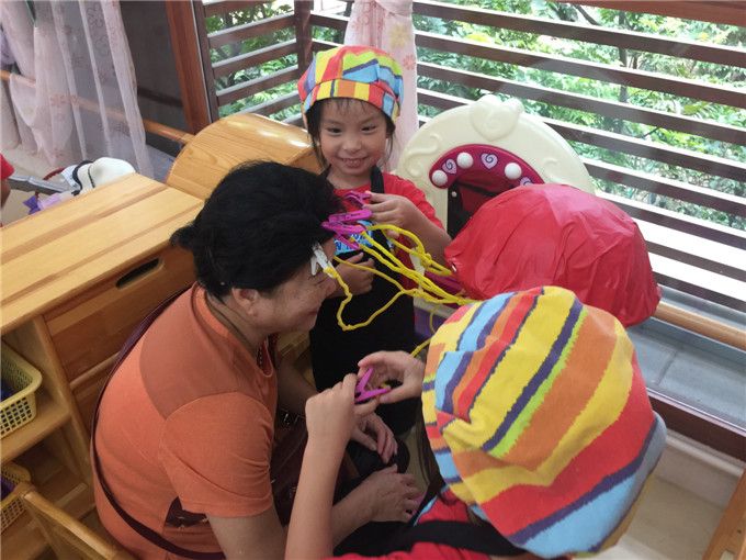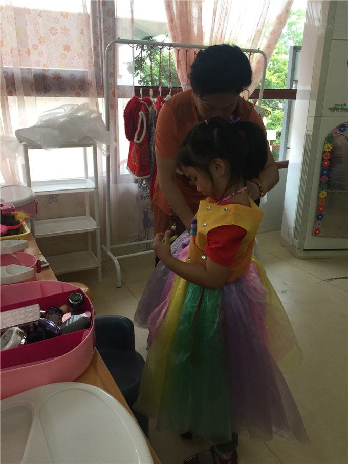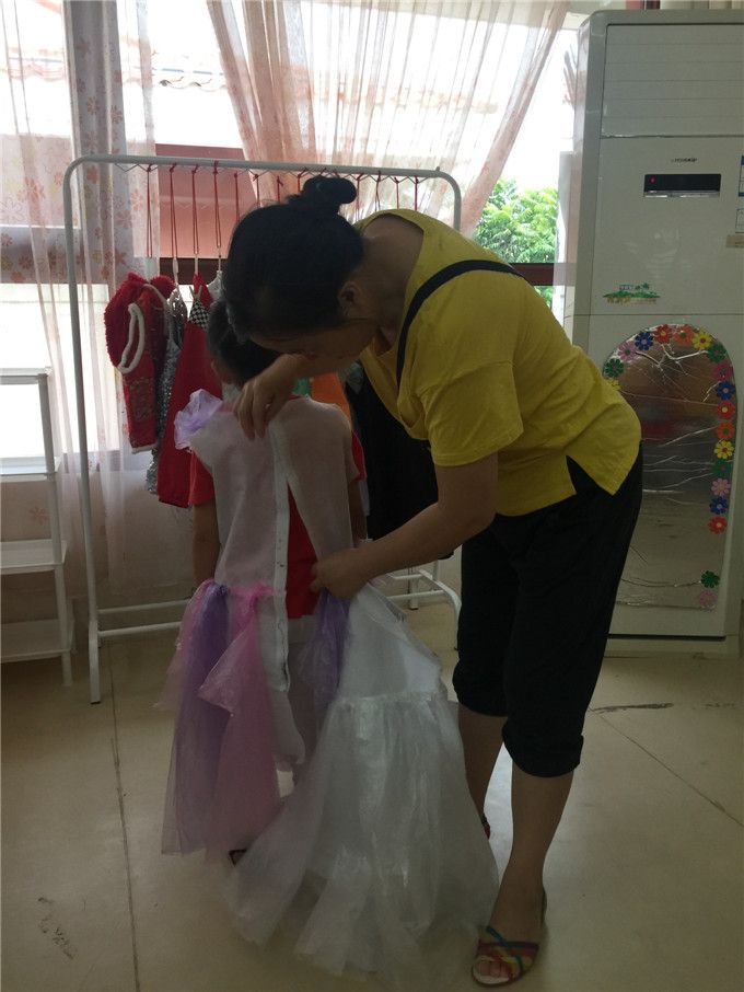 依依奶奶和晨岚奶奶则扮演服装师的角色,在给两个小朋友梳妆打扮呢!是不是特别适合他们呀!