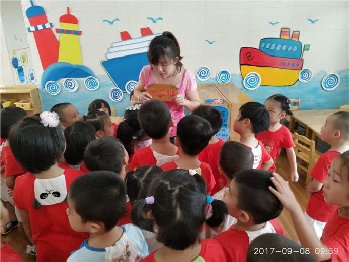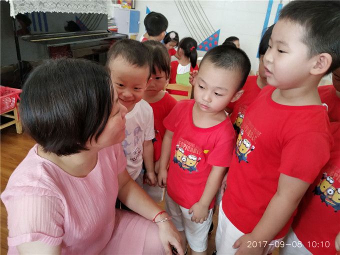开学啦,开学啦!中二班的小朋友们陆陆续续来到了新班级,沉寂一个暑期的教室顿时被小朋友们的欢笑声、叫喊声“叫醒”啦:“赫赫,我好久没见到你啦。”“家家,你长得好高啦。”你看我今天穿了一双新鞋子来上学哦。”……小朋友们纷纷拉着自己的小伙伴兴奋地叽叽喳喳起来。