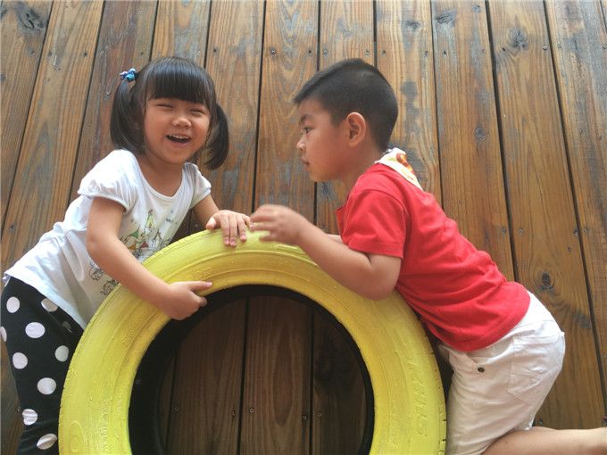 “我喜欢玩轮胎攀爬,我能爬得很高很高呢。”