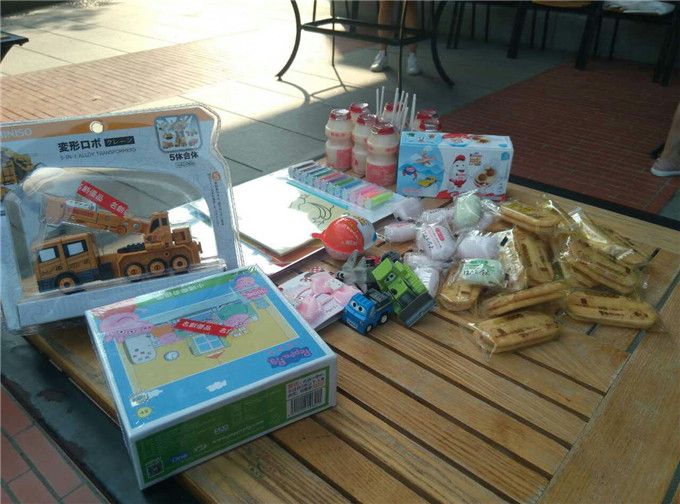 中一班的家委们动作利索地定好了活动时间和场地,然后开始了博饼活动的各项准备。瞧!妈妈们正在超市里选购博饼物品哦!哇!有好吃的养乐多、巧克力蛋,还有霸气的挖土机和可爱的鳄鱼抱偶……看了心里真是痒痒的,真想全部抱回家去哈!