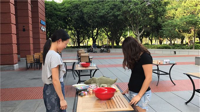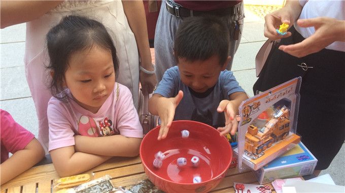哈哈!激动人心的时刻到来啦!孩子们陆陆续续地来到了场地,被桌子上琳琅满目的奖品瞬间吸引,满眼星光。博饼活动开始啦!叮叮铛铛,咖啡厅处瞬间此起彼伏地响起了悦耳的骰子声。