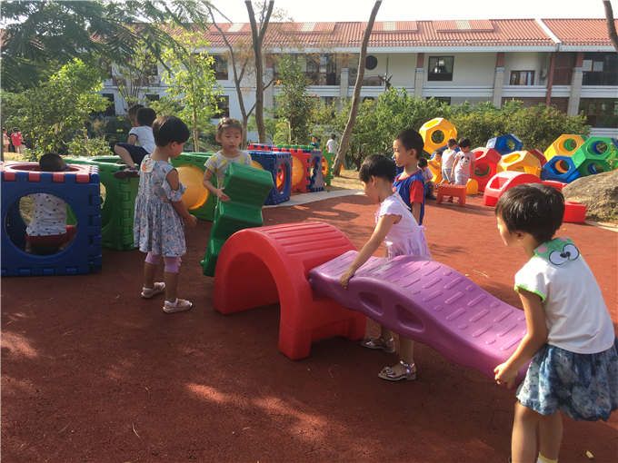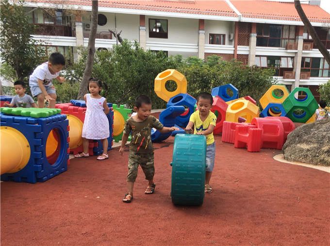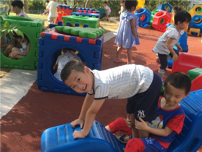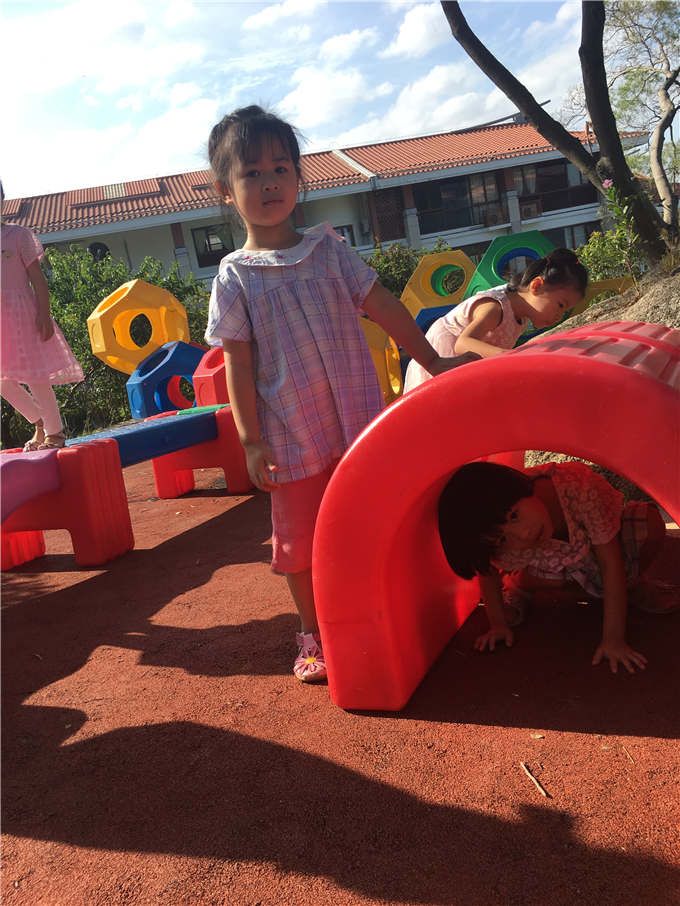 就这样的两块弧形块块挨在一起,马上就可以钻洞洞玩了,好神奇!玩倦了,爬到洞洞顶上高高地坐着,也是惬意呀!