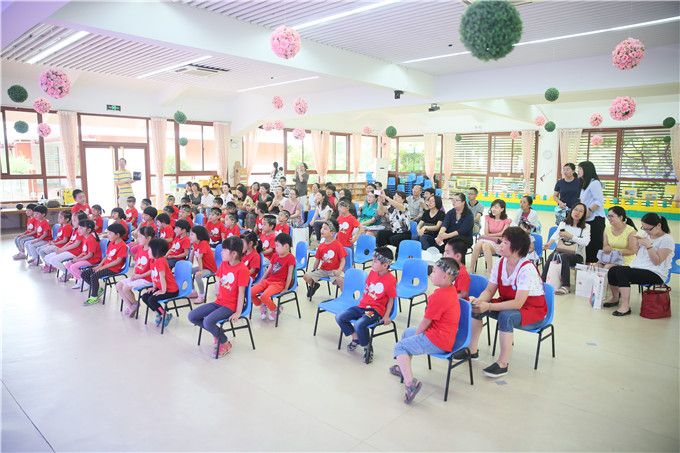 在老师们精心地布置下,幼儿园音体室的舞台洋溢着童真的色彩,弥漫着快乐的气息,小朋友们也按耐不住内心的激动,期待着演出的开始。
