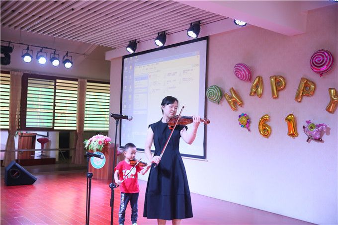 当朴泓妈妈一袭优雅的黑色连衣裙和小朴泓手持小提琴走上舞台,大家发出了惊艳般的掌声与呐喊,母子俩为大家带来了悠扬动听的小提琴曲《划小船》,瞧!这景象多么温馨、迷人。