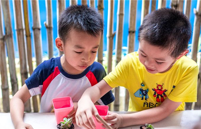 精彩不断,小朋友们在度假区内体验了多肉植物DIY、旋转风车DIY、指压板奔跑、摸着石头过河等好玩的游戏。