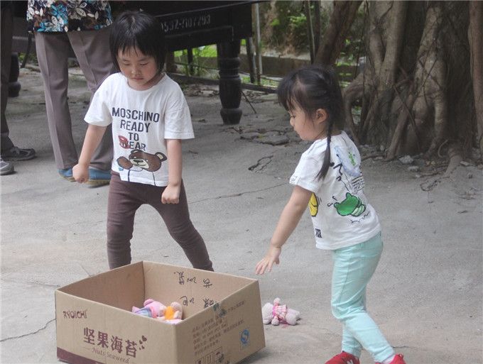 夹娃娃是需要家长和孩子们默契配合才能取胜的游戏。爸爸队先上场,只见身高腿长的爸爸们发挥优势,双脚岿然不动,仅靠上半身的转动就将一个个娃娃夹入纸箱中。妈妈队也不甘示弱,个个身手敏捷、动作矫健。宝贝们则都是“神助攻”,与爸爸妈妈配合默契。不一会,纸箱中就战果累累了。