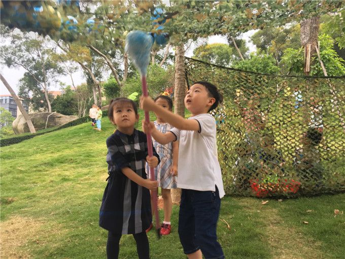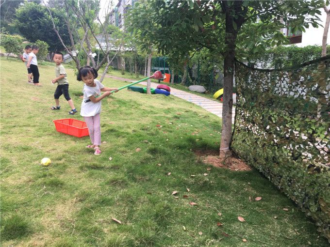 一场雷雨过后,少了夏天的炎热,带着孩子们漫步小山坡,孩子们三三俩俩拉着小手,畅谈着“六一”的那些趣事。“六一那天你在山坡上玩了什么呀?”“我玩了可多项目啦,有寻宝、还有爬树。”“我也玩了很多项目,还有我们班级自己做的天罗地网,实在太好玩了!”“对对对,那些报纸球可是我们班的小朋友做的呢!可结实了!”……