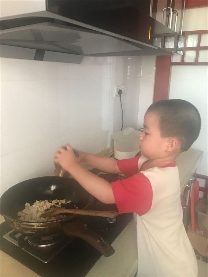你瞧!我们也和爸爸妈妈一起下橱房了。
