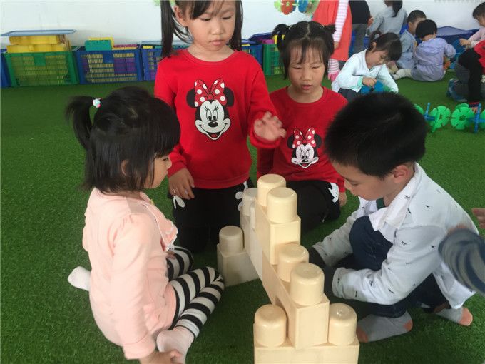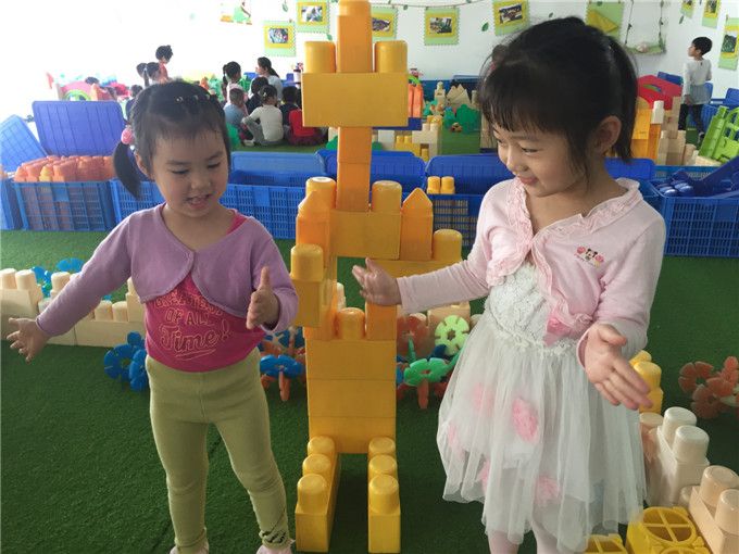 我们的作品还不错吧!你们看活动中每个孩子都积极投入到游戏中,挖掘自己的想象力与创造力,搭建出来的作品也十分新颖、大胆。孩子们可喜欢结构游戏了,建构的同时与同伴们分享着快乐。我们个个都是建构小能手噢!