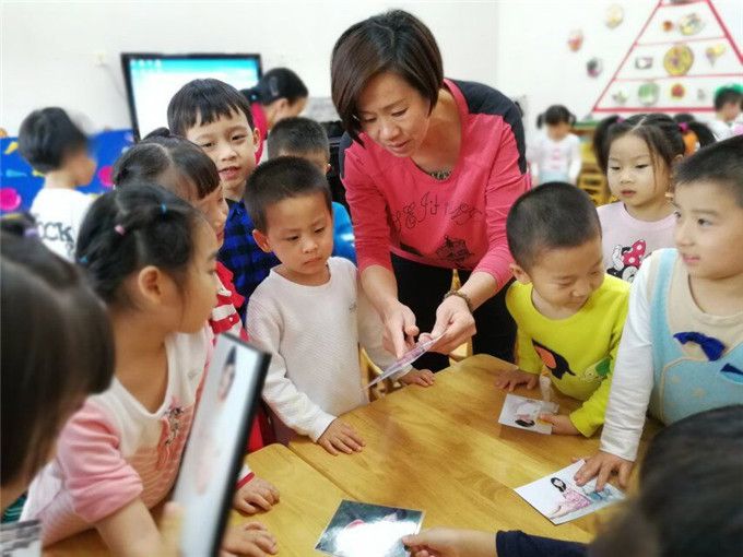 伴随着音乐声,孩子们拿着照片围绕在了视频前。 “咦,这大大的肚皮是什么谁的呢?爱心又代表什么?”