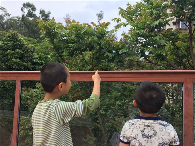 刚走到山坡的楼梯处,小杰就指着楼梯外面的树问道“这树叶怎么黄了?”“啊,夏天也有黄树叶?”旁边的尧尧说道。