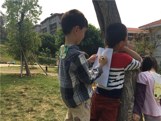 通过这次的活动,孩子们与山坡来了一次近距离的对话。利用现有资源让孩子们亲身去感受与探索,在说说、画画中发现原来每一种树都是独一无二的。