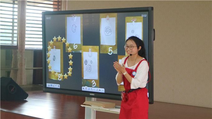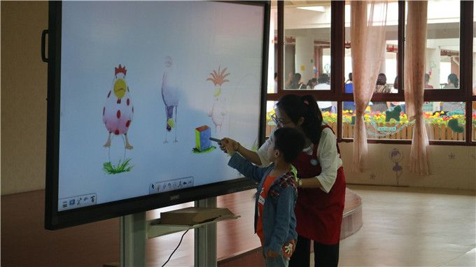 活动中,老师利用新颖的白板教学吸引着孩子的目光。“哇!我可以把这些奇妙的蛋咻咻咻地放回母鸡们的身体下面。”孩子们快乐地参与着,认真地探索着……