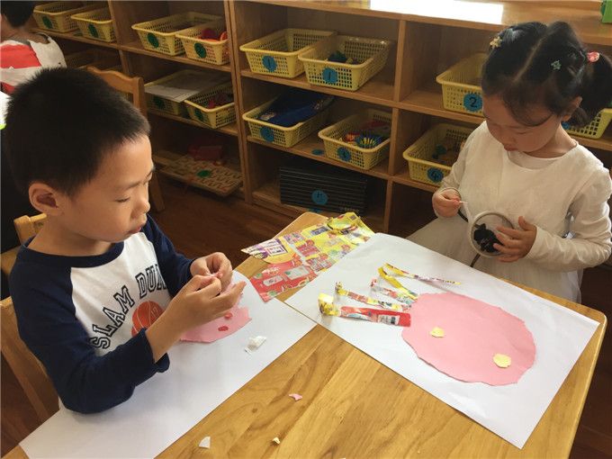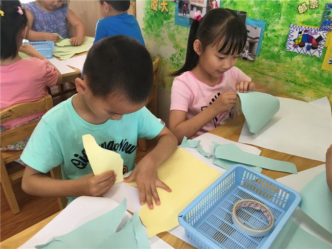 小朋友们从小就喜欢乱撕乱画,他们把乱撕乱画作为是一种自由的游戏活动,自己想怎么撕就怎么撕,想怎么画就怎么画。今天中六班的小朋友们在创作什么呢?让我们一起去瞧瞧吧!
