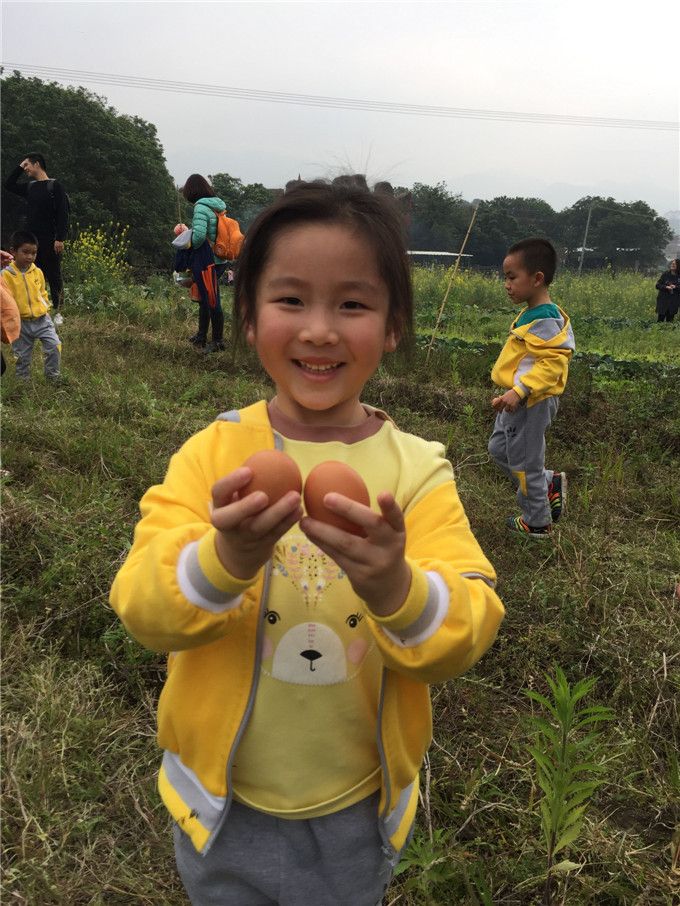 咦?大家都埋着头在田里寻找什么宝贝呢?哈哈!找到啦!原来是老母鸡下的蛋呀!寻蛋活动热火朝天地进行着,找到宝贝的小朋友还能获得神奇印章哦。寻宝结束了,小朋友又在田野里做起了有趣的游戏,连爸爸妈妈也按耐不住纷纷参与。瞧,我们的小朋友、大朋友们玩得多开心呀!