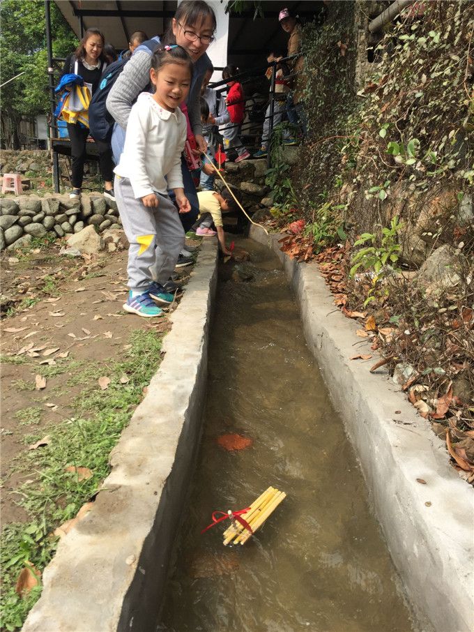 惊喜连连,利用景区南拥汀溪水库,东邻造水村,脚边处处有水流淌过的得天独厚环境,工作人员又给大家准备了芦苇。小朋友们和爸爸妈妈一起手工DIY了一艘芦苇船,顺着溪水,小船带着美好的祝福缓缓驶向远方。
