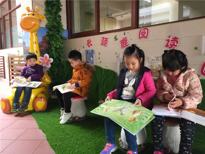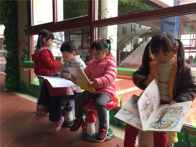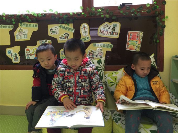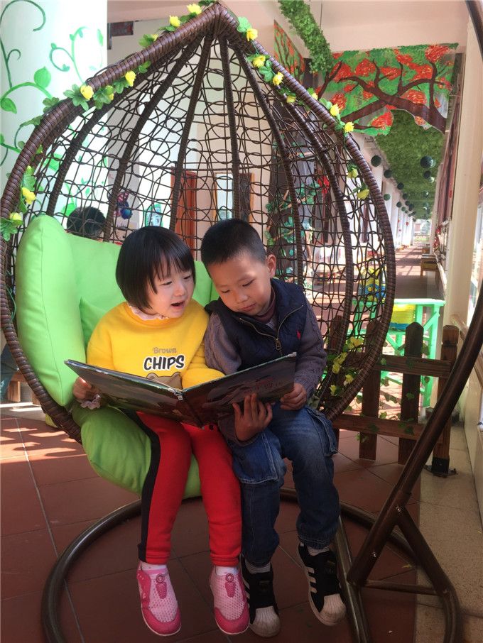 幼儿园里还有许许多多温馨可爱的阅读区,比如,十分吸引小朋友们的大吊椅就在“小山庄”阅读区。