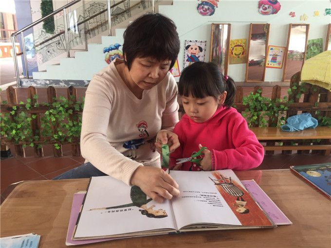 不仅有大吊椅,“小山庄”里还有“小松鼠的家”、“树荫下”、木椅上等等让小朋友们和伙伴们正真投入书的“森林”。“快看熙和,这两只鸭在打架呢!”“灿灿你看这个妈妈穿的衣服和我一样。”“梓宸,这个小朋友的妈妈不在家,这个机器人是不是要陪他?”