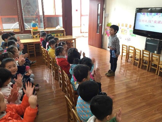 儿歌诵读活动有效地促进了幼儿讲文明、懂礼貌以及卫生习惯的形成,同时也为孩子们提供了自我展示的舞台。吟唱文明歌,学做文明事,文明礼仪的种子已悄悄在孩子们幼小的心灵里种下,相信礼仪之花将处处开遍。