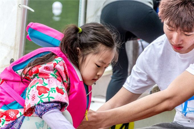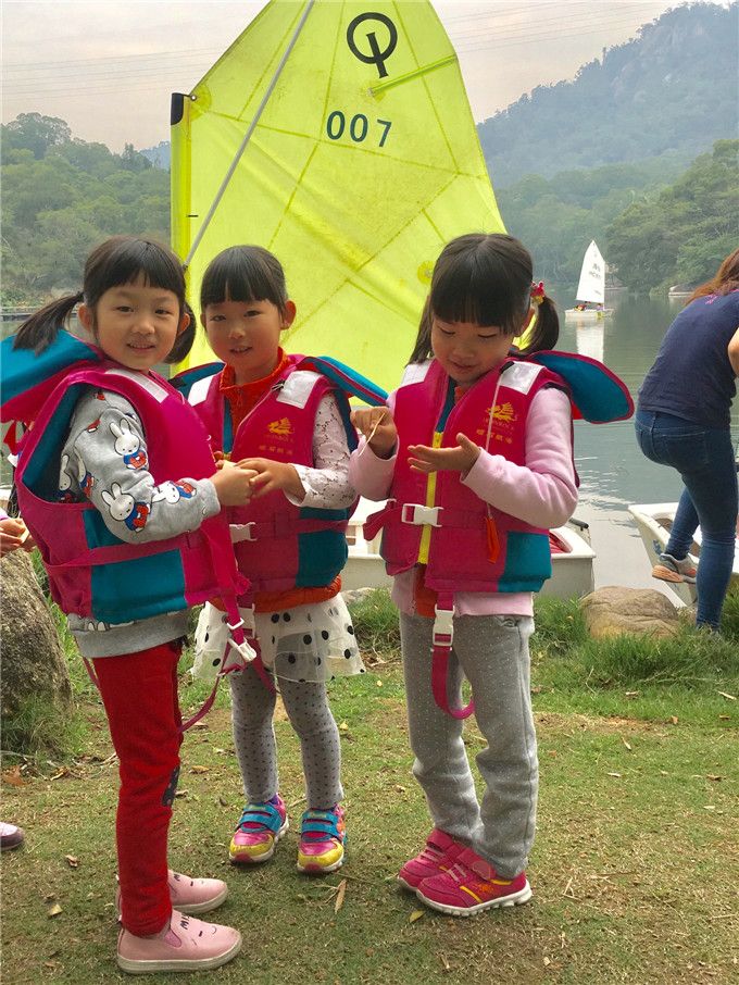 登船后,孩子们的问题接踵而至,“姐姐,为什么帆船要有帆呢?可以做什么用?”“怎么只能坐两个人呀?”“船怎么开得那么慢呢?”“哥哥,要什么时候船开得比较快哦”大学生哥哥姐姐一一解答孩子们的疑惑,“哦,原来风大帆船就会开得快”“哈哈,风大点吧,我要超过前面的那艘船”……