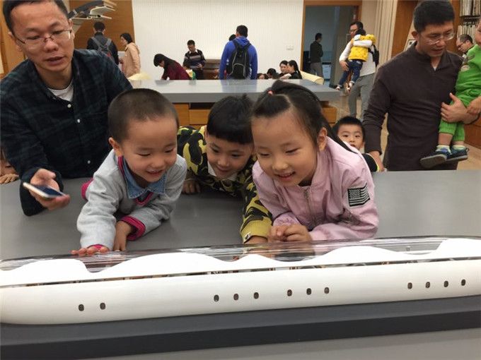 可是这么大的飞机,里面都长什么样呢?坐过飞机的小朋友立刻兴奋地说:“就是有很多椅子啊,窗户可以看到外面的白云。”说着,工作人员们将我们带入一个神秘的展厅,韵淇围着飞机模型爱不释手,“瑾暄快看,飞机里面是长这样的!”明易指着桌上摆放的另一个机舱模型招呼着小伙伴一起欣赏。