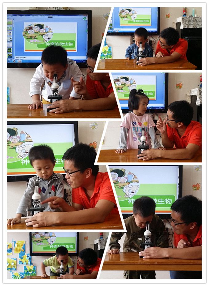 王老师取出了细菌培养皿里的一些小细菌,放在显微镜下,孩子们都跃跃欲试,迫不及待地要想来见识一下在显微镜下这些细菌长啥样?