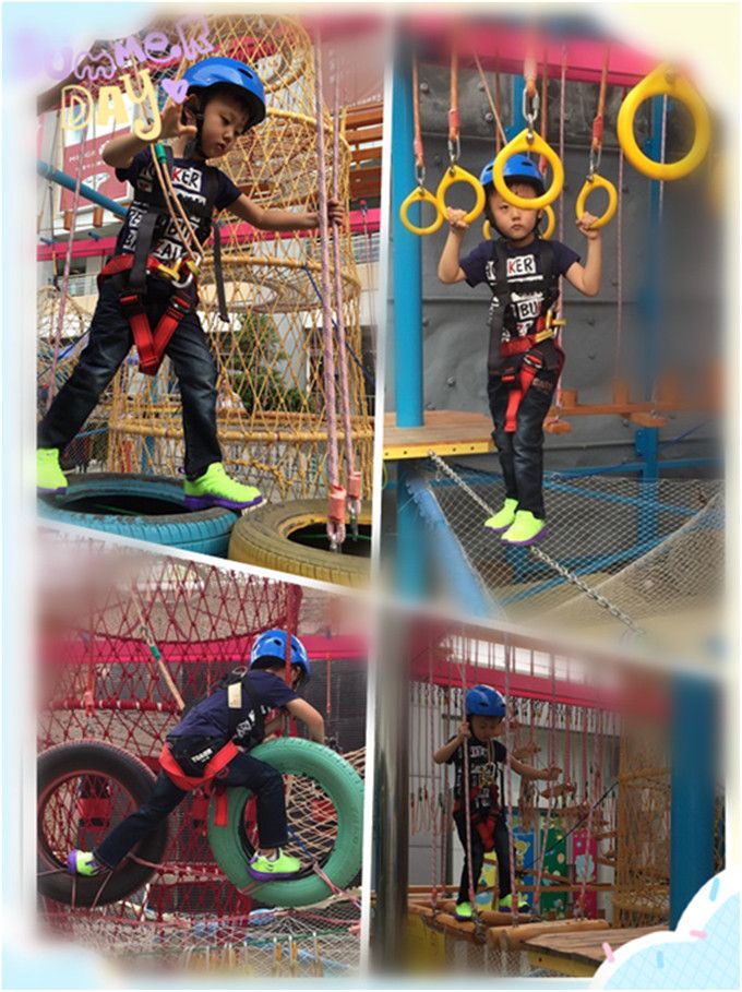 经过这次的分享会,咱们中5班可是发掘出了不少运动小能手。小星参加了“极限挑战”在专业的保护措施下,勇往直前!