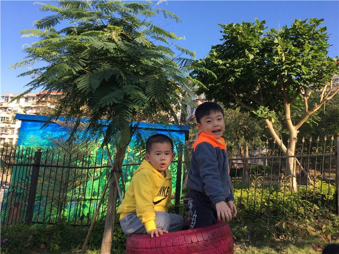 清晨的阳光沐浴着冬日的大地,这不正是运动的好时机吗?小朋友们来到幼儿园的户外场地上做起了游戏!山坡、早操场地处处都是孩子们结伴玩耍的身影。