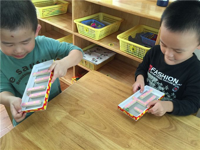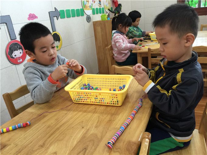 大大小小的珠子是孩子们的最爱,有的夹、有的穿、有的走珠……玩得不亦乐乎。