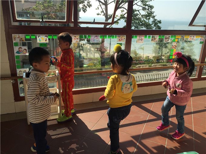 走廊上,和着阳光说说笑笑、唱唱跳跳,这么让人愉悦的画面感不言而喻!