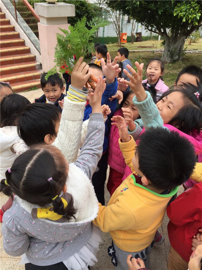 在阳光明媚早晨,中四班的孩子们来到山坡的“开心农场”,他们迫不及待地想知道,经过一个假期,他们播种的胡萝卜种子长出来了没有?