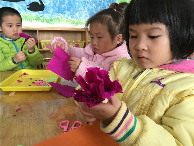 在这个特殊的节日里,孩子们要用自己的方式表达对妈妈、奶奶们的爱。这不,在《我的好妈妈》的音乐声中一双双灵巧的小手行动起来了。