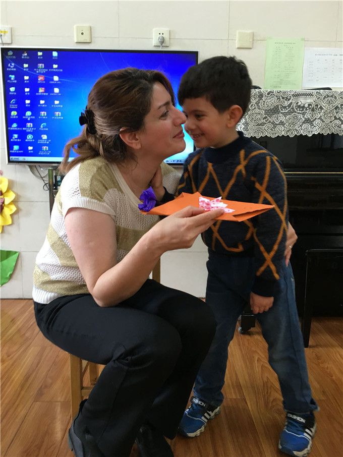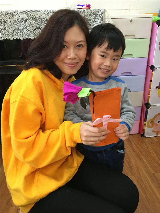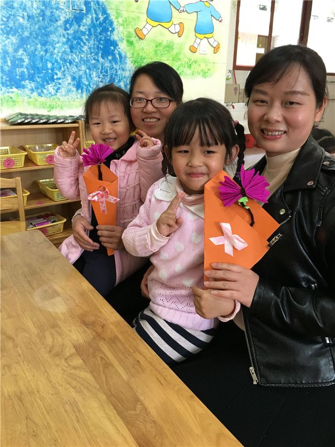 好不容易等到放学的时刻,孩子们迫不及待地把自己的作品送给妈妈奶奶们,对着她们大声地说:“我爱您,您辛苦了!”